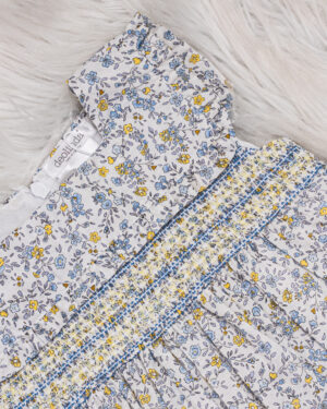 Vestido smock bordado de veleros con cuello Peter Pan a rayas azules y blancas con forro de algodón, con un diseño clásico ideal para el verano o eventos especiales.